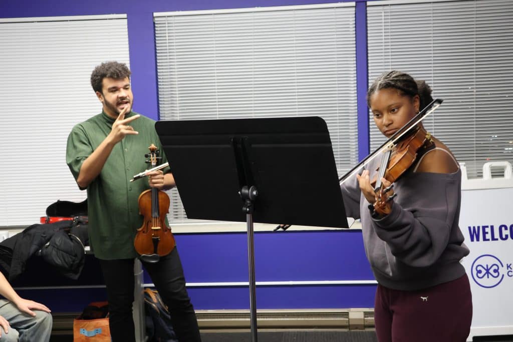 Key to Change welcomed back Curtis Stewart, seven-time GRAMMY-nominated violinist, composer, and longtime friend of our organization, for a powerful and uplifting masterclass at our Renton studio last Thursday. This visit marks Curtis’s third time working with our students and continues a meaningful relationship that began when he served as Composer in Residence during the 2022-2023 academic year.