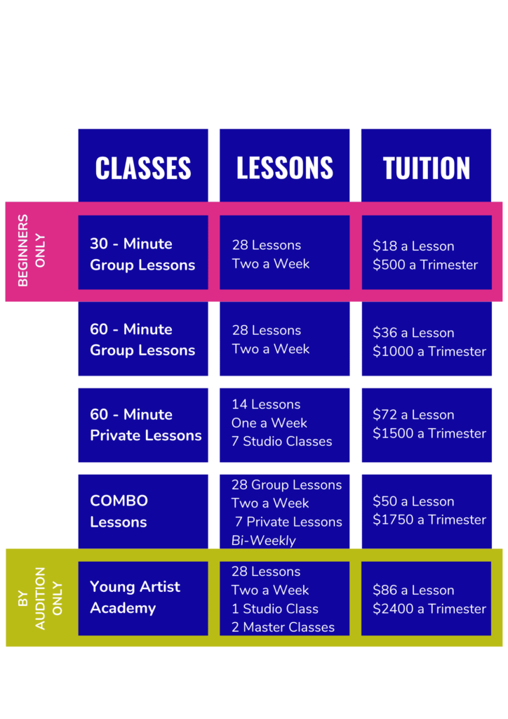 Tuition is due on the first Friday at the beginning of each trimester. Families may contact us to set up a tuition payment plan for weekly, biweekly or monthly payments. Failure to pay by the third lesson will result in termination of lessons.